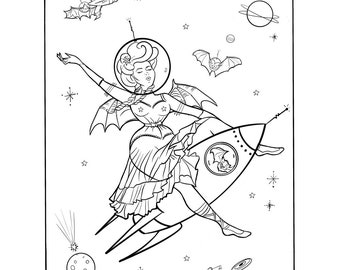 Pin Up Girl Coloring Etsy